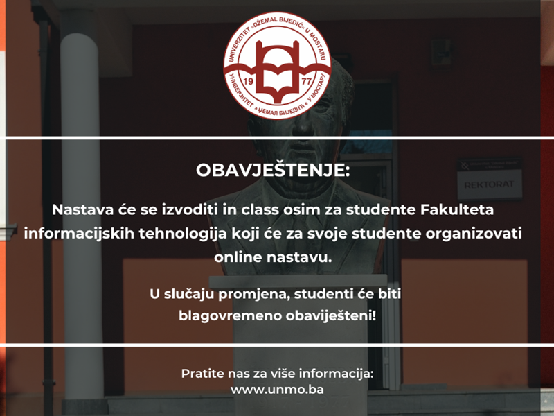 Obavještenje o izvođenju nastave na Univerzitetu "Džemal Bijedić" u Mostaru