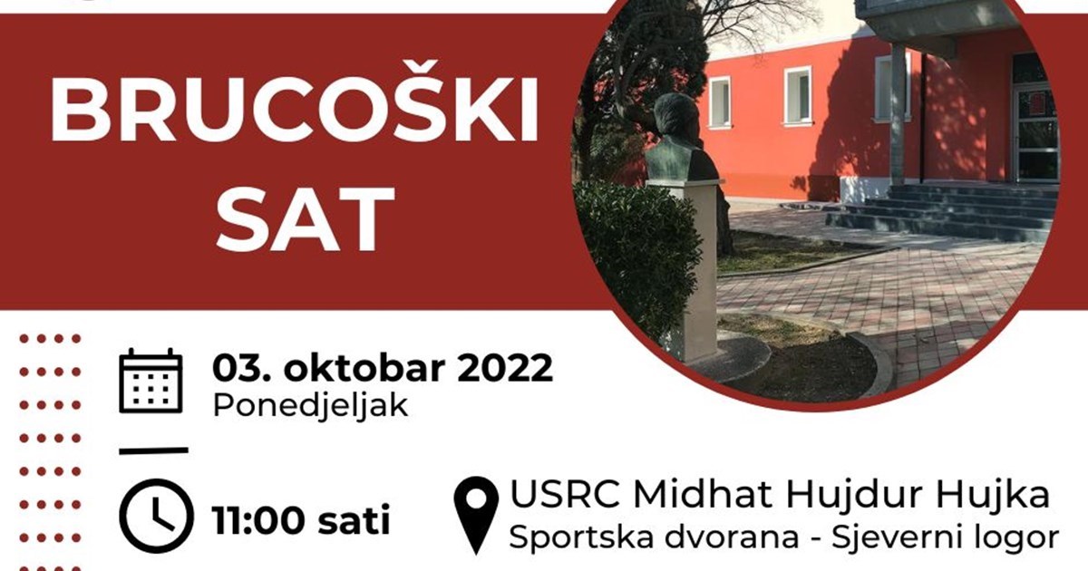Tradicionalna manifestacija Univerziteta „Brucoški sat“ će se održati u ponedjeljak 3.10.2022. godine, sa početkom u 11 sati, u sportskoj dvorani u Sjevernom logoru.